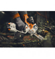 Pack avec 2 batteries AS 2, 1 chargeur rapide AL 5-2 et 1 mallette à outils Scie à batterie puissante et polyvalente pour les professionnels Pour l'entretien des arbres et des arbustes ainsi que le sciage de bois sur les chantiers Design ergonomique et compact, faible poids et bon équilibre _______________ Scie à batterie puissante pour les professionnels